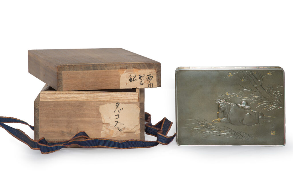 In November’s newsletter I promised to find a star item to close out this year’s exclusive members offer. Well, here we go, whilst modest in terms of price point, I am delighted to offer this most charming pure silver and mixed metal lidded trinket or jewellery box complete with its original tomobako. Fully artist signed by a well recorded former sword fitting maker who clearly excelled in the Katakiri-bori carving technique with the use of mixed metal inlays. The unusual scene of a young attendant at rest upon his buffalo is most endearing, a perfect Christmas gift for a loved one, or perhaps a treat for yourself. Simply click the image for further details.