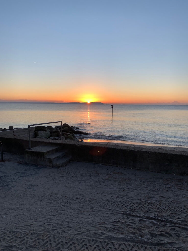 And finally, on a recent chilly early morning walk on the beach I could not resist taking this picture of the sun rising over the Isle of Wight, can you spot the Cormorant drying his wings whilst perched upon the groyne in the foreground?