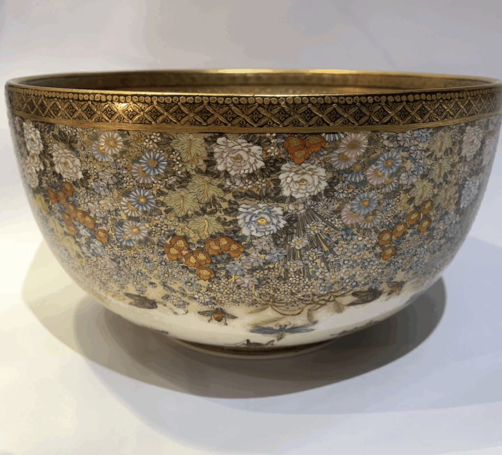 Focussing on Ash’s obvious passion for Satsuma leads me to this month’s featured item. This exceptionally fine and large Satsuma bowl has resided in a private collection since the year 2000, when it was acquired by the last custodians at Christies London.