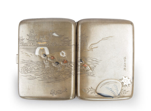Japanese Shibuichi Cigarette Case – Yamada Motononbu 1847-1897.