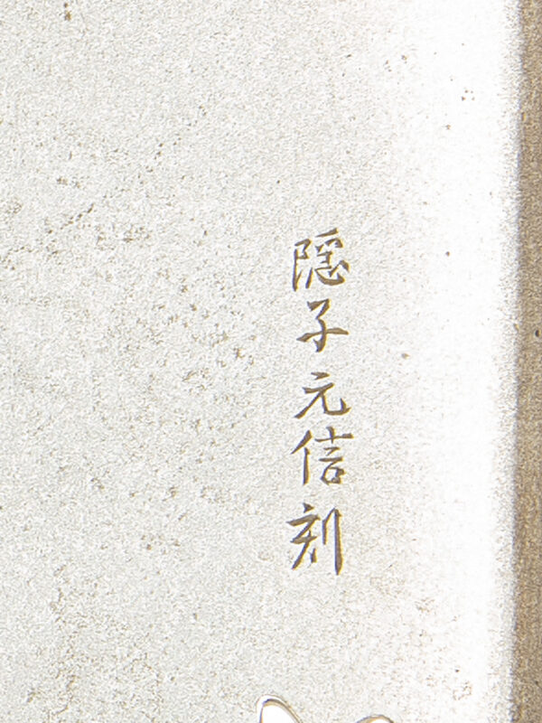Yamada Motonobu (1847-97) his art name Inshi ,was one of the finest of the Meiji period metalwork artists coming from a family which had served as retainers to the Mito branch of the Tokugawa family, Motonobu apparently started learning his incredible metalwork skills aged only 13, although sadly he also died at a very young age . Motonobu is well recorded as an artist commissioned by the notable metalwork retailers the Ozeki company, and is also recorded as having served the Imperial Household in 1877.