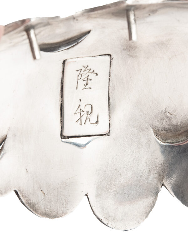 The artist Sano Takachika was a master of hammering, metal carving and chiseling and a recorded member of the Tokyo Chokokai ( Tokyo association of carvers and sculpters ). He is known to have exhibited at many of the expositions of the period including the Japan art society spring exhibition of 1894, where he exhibited gold and silver figures of a heron and a crow .